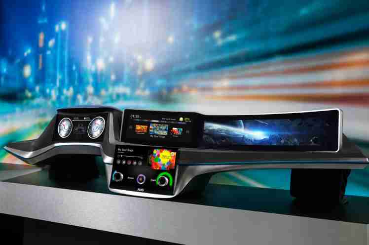 由 5G 和 AIoT 形塑的新智能场域,,,促使汽车成为仅次于家庭和办公室的第三重要使用空间,,数码驾驶舱因而成为智能车用技术发展重心。。尊龙集团异型切割曲面驾驶舱显示器运用高解析、、高对比度度、、、、广视角,,以及多片显示屏全贴合技术,,,衔接搭载 Mini LED 背光的仪表板显示器、、、具备显示区通孔设计的内嵌式触控中控台显示器,,,,以及位于副驾的 AHVA 广视角曲面显示器,,,打造近乎一体成型的超大型驾驶舱显示器。。。为了提高驾驶安全和便利性,,,用于后视镜的尊龙集团 9.6寸异型切割 LTPS 显示器具有极窄边框,,,,可切换镜面或 LCD 模式,,,并有防眩光设计可避免夜间的前灯眩光。。