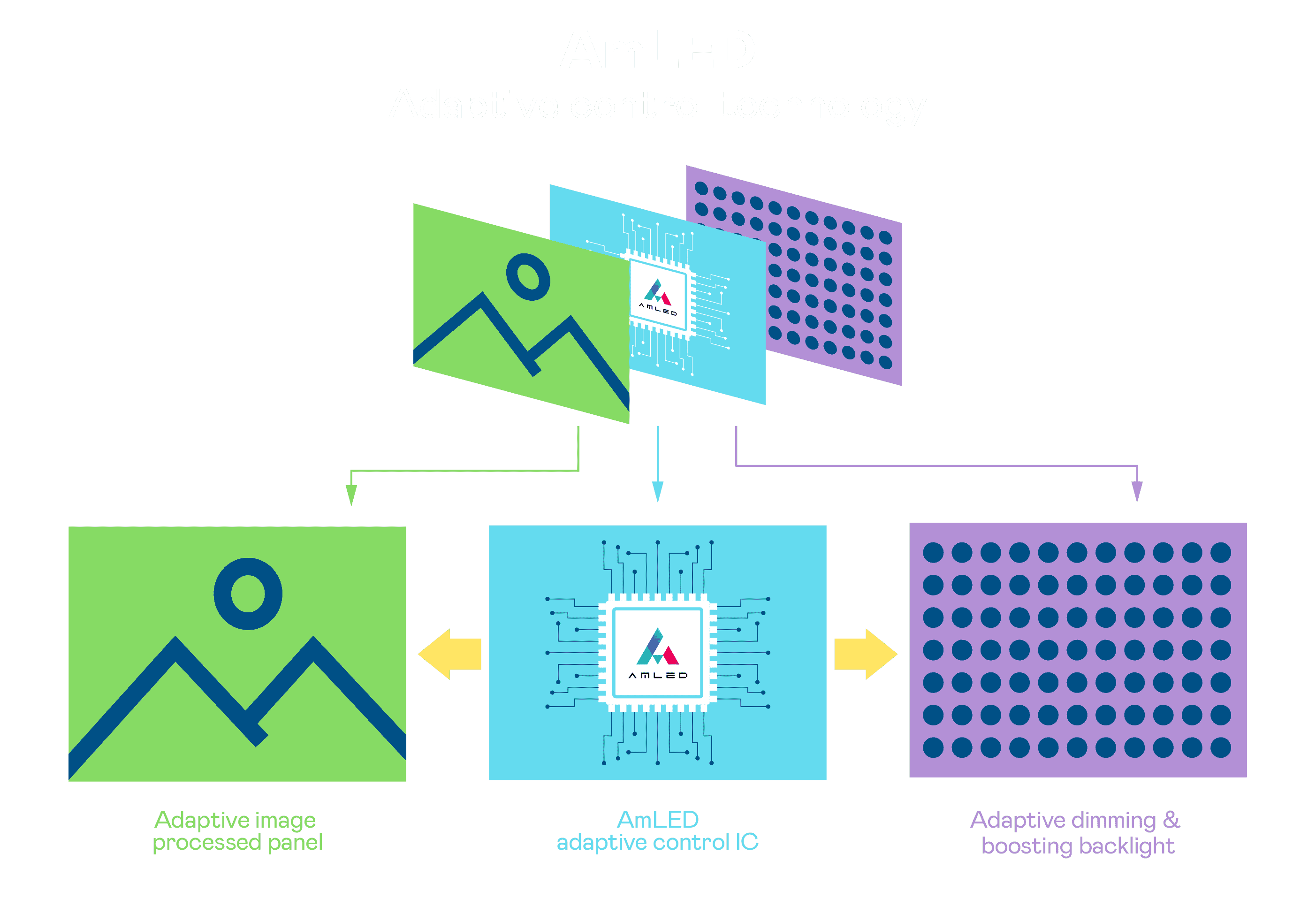 透过动态影像处理和 Mini LED 背光模组的动态对比及峰值亮度调变,,,AmLED 显示技术精准细致的局部调光效果达到超过 1,000 nits 的超高亮度表现,,,,亮部更明亮、、、、暗处更深邃,,,,呈现真实黑色中的亮度以及平滑灰阶,,,,打造出具层次分明的精致光影细节。。。。